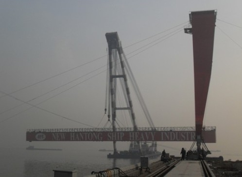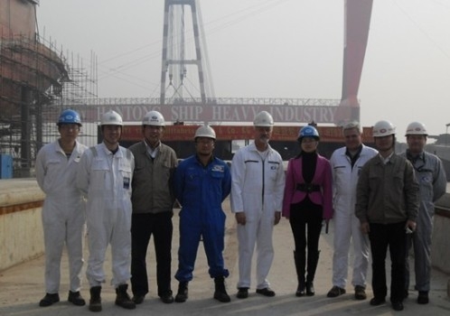 上午9點28分,公司在一號船臺2#線舉行57000噸散貨船(船體號:HT038)上船臺儀式,這是為德國CONTI公司建造的10艘系列船中的第二艘,預(yù)計明年年中交船。