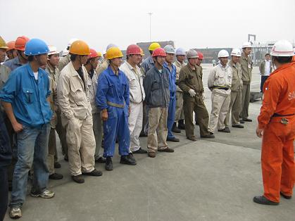 為貫徹執(zhí)行消防安全“預防為主,防消結合”的方針,普及全員的消防意識,提高火災撲救的組織和處理能力,檢驗消防設備設施完好狀況,韓通船舶重工于2009年6月10日上午9:00舉行了一次消防演習活動。各部門、車間和外協(xié)施工單位共有100多人參加。