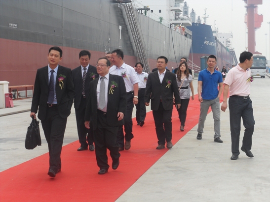 2011年5月30日,我司為寶源國際建造的第三艘57000噸散貨輪(HT084)在新韓通碼頭隆重舉行命名及交船儀式。本輪在公司全體員工、駐場代表及DNV船級社的努力奮斗,經(jīng)過為期9個(gè)月的辛苦建造,達(dá)到了交付狀態(tài)。