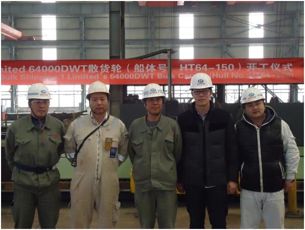 2013年12月20日,新韓通為CONTI船東建造的64000噸散貨輪(HT64-150)成功舉行開工儀式,新韓通副總經(jīng)理鄭錫山及船東船檢參加本次儀式。
