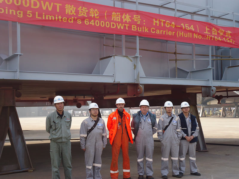 2014年11月20日上午10:18分,新韓通為船東建造的64000噸散貨輪(HT64-154)成功舉行上臺儀式,新韓通總經(jīng)理助理圣衛(wèi)兵及船東船檢參加本次儀式。