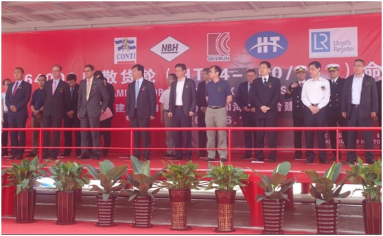 我司為Conti建造的64000噸散貨輪(HT64-150/151)達到了命名狀態(tài),于2015年6月18日在我司碼頭同時舉行了隆重命名儀式。儀式結(jié)束后,船東船檢代表等參觀了150船,并給予很高的評價。至此HT64-150/151船成功命名。