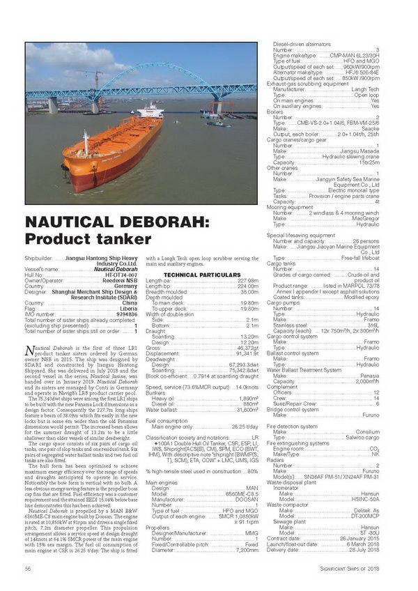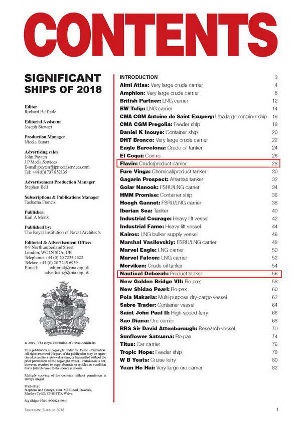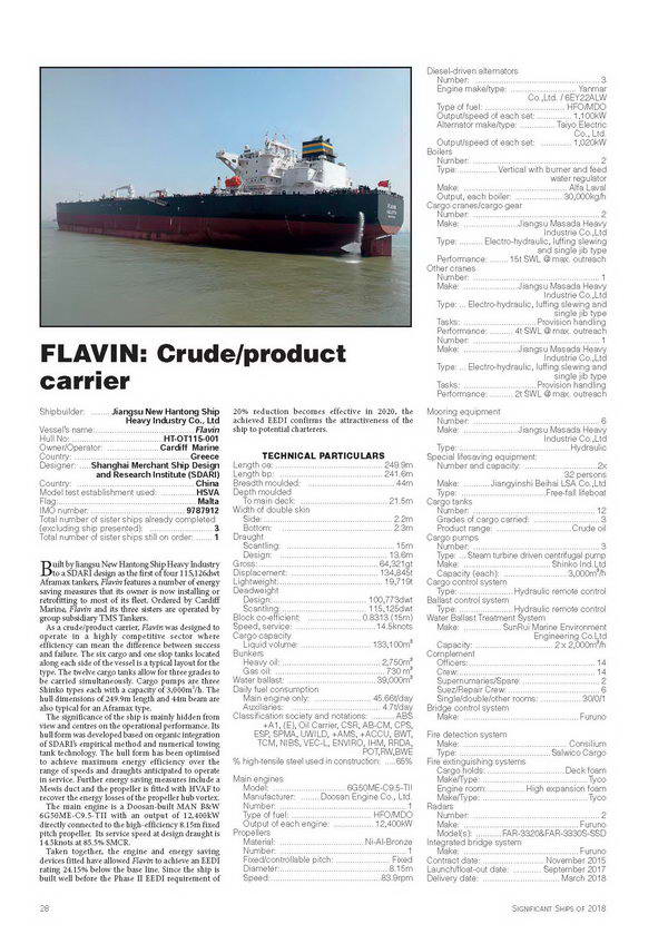 韓通集團為挪威客戶TRF建造的74000噸成品油輪(船體號:HT-OT74-007)及希臘客戶Cardiff建造的114000噸油輪(船體號:HT-OT115-001)入選 SIGNIFICANT SHIPS OF 2018(Published by The Royal Institution of Naval Architects)。