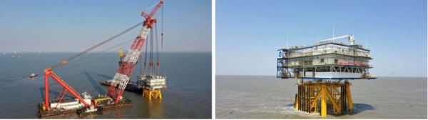 4月19日:三峽新能源如東H10海上升壓站成功吊裝