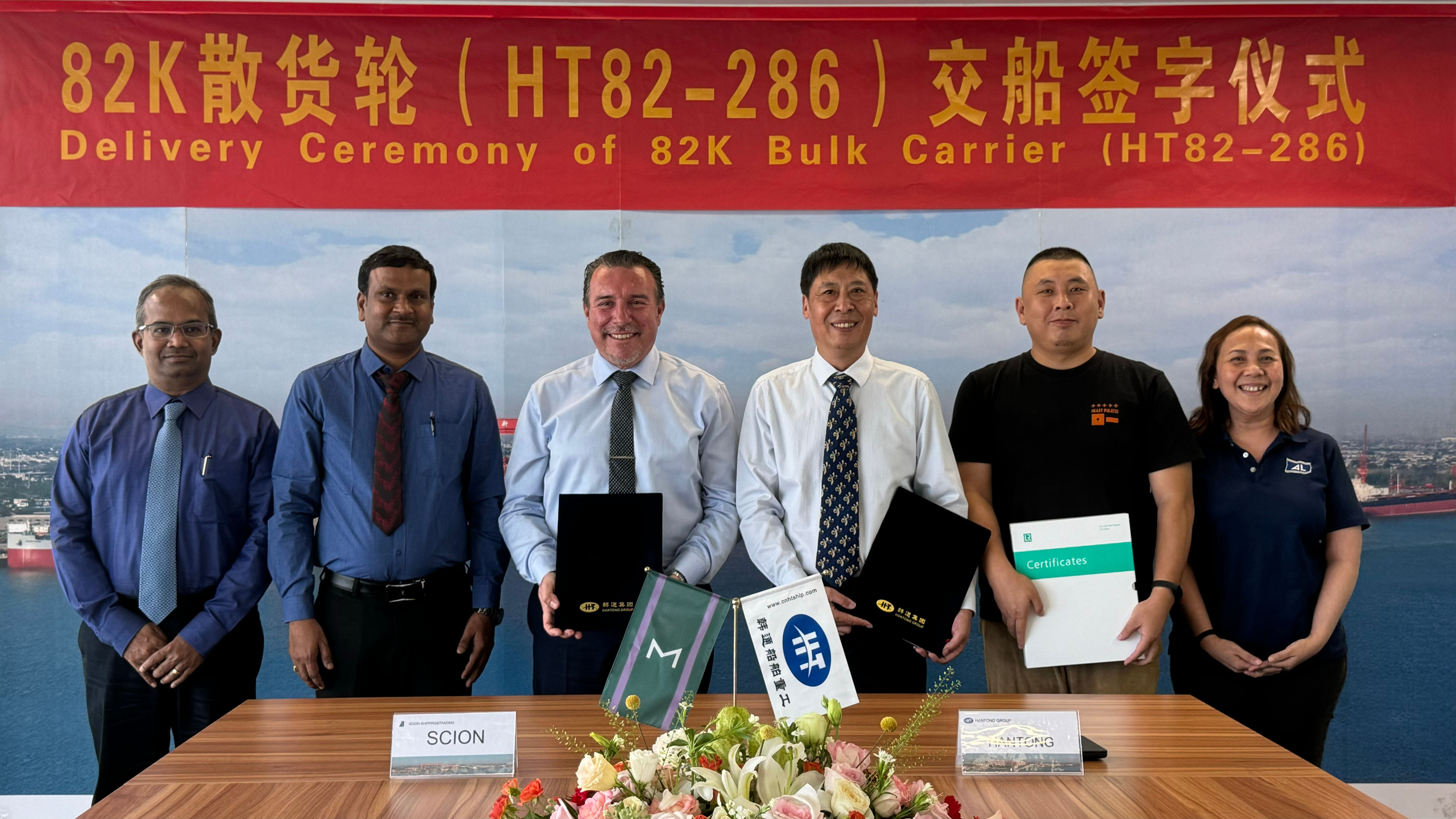 2024年8月12日,韓通集團(tuán)為德國(guó)Scion船東建造的首艘82000噸散貨輪 “SCION MATHILDA”(船體號(hào):HT82-286)順利簽字交付。