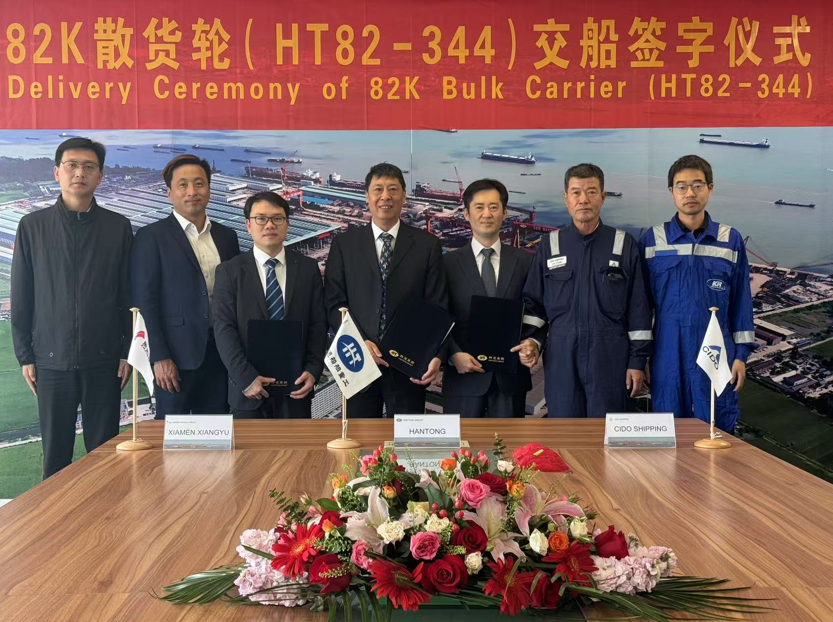 2025年4月28日是一個特殊的日子,韓通為韓國CIDO船東量身定制的第一艘82000噸散貨輪 “FORTUNE KNIGHT”(船體號:HT82-344)順利簽字交付。