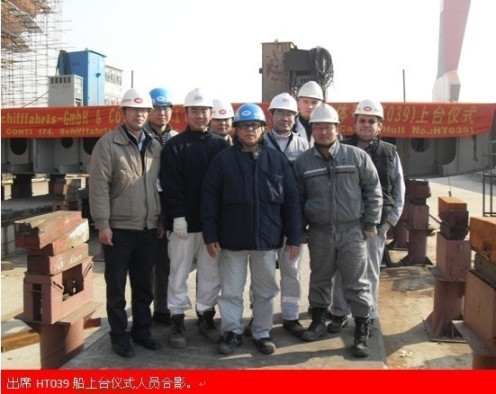 12月21日上午9點(diǎn)58分,為德國CONTI公司建造的57000噸散貨船(船體號:HT039)在2#船臺順利鋪底,公司領(lǐng)導(dǎo)、船東代表以及LR駐廠驗(yàn)船師等共同出席上臺儀式。