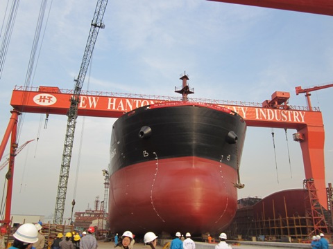 2011年3月17日下午4:28,我司為寶源國際有限公司建造的第三艘57000噸散貨輪(船體號:HT084)在新韓通船臺順利下水,該船入DNV船級社。