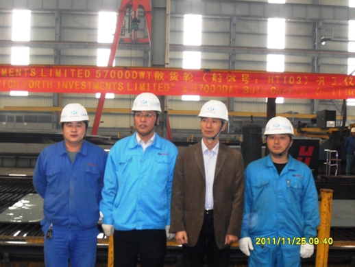 2011年11月25號(hào)上午09:18,新韓通為RICH FORTH INVESTMENTS LIMITED建造的57000噸散貨輪(船體號(hào):HT103)成功舉行開工儀式,新韓通副總經(jīng)理周義慶,NK船檢副總經(jīng)理耿國華等人參加本次儀式。