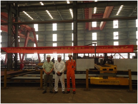 2014年6月6日,新韓通為Kmarin船東建造的64000噸散貨輪(HT64-124)成功舉行開工儀式,新韓通總經(jīng)理助理圣衛(wèi)兵及船東船檢參加本次儀式。