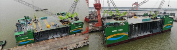 海洋水建為浙江電建和中鐵大橋局嵊泗2#海上風電項目改造的“漢拿山”號半潛式風電安裝船已全部完工,雙方簽訂了“漢拿山”號半潛式風機安裝船交接確認單,即將赴嵊泗2#風電項目進行風機的安裝吊裝施工作業(yè)。